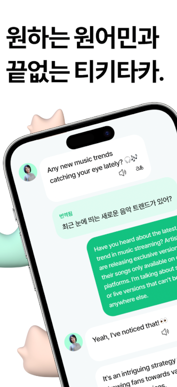 - 소개: 24시간 AI 튜터 + 원어민 1:1 회화까지 지원하는 하이브리드 앱.