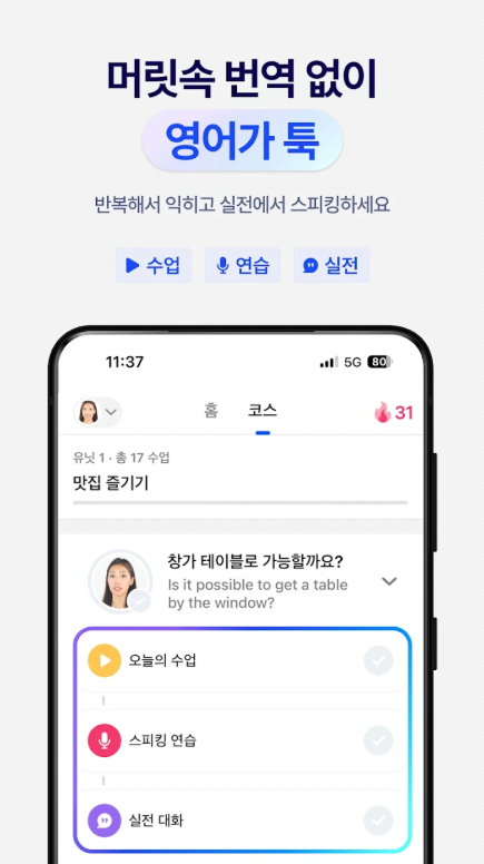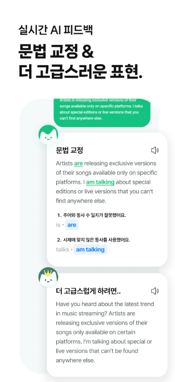 - 상황별 프리토킹 → 여행, 면접, 비즈니스 상황을 시뮬레이션