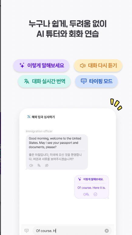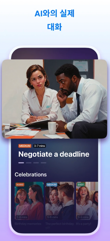 - 소개: 몰입형 시나리오 대화를 통해 실전 연습 제공.