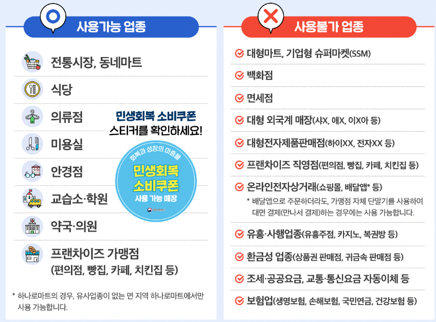 🚫 사용 불가: 대형마트, 백화점, 온라인 쇼핑몰 등