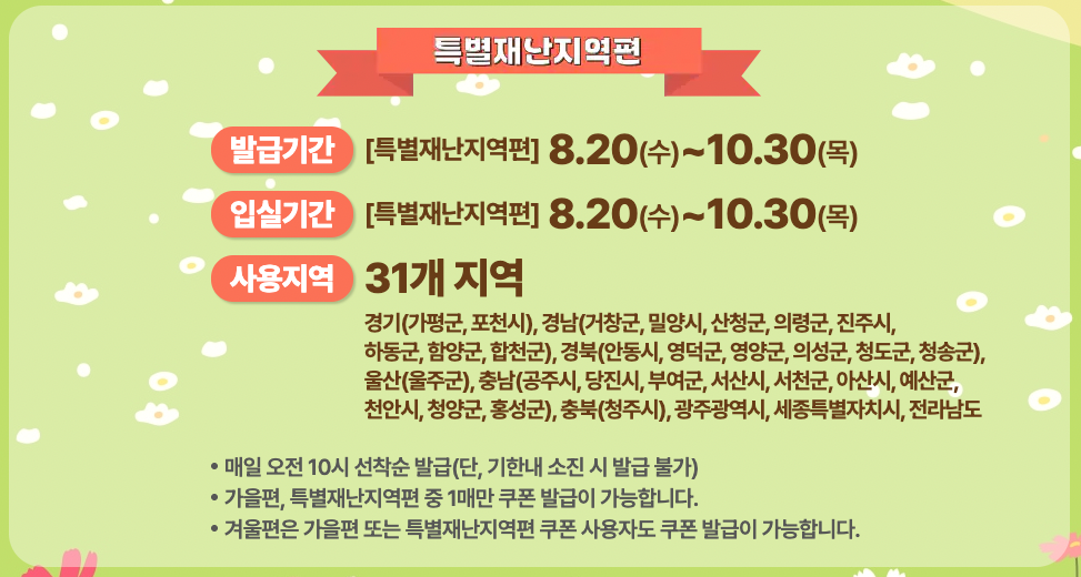 - 사용 제한: 가을·특별재난편 중 하나만 발급, 겨울편은 별도 발급 가능