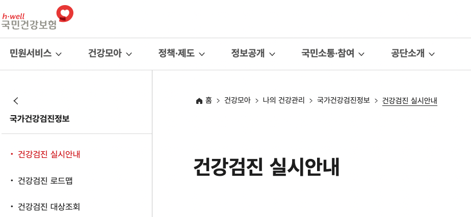 - 검진대상 조회: 국민건강보험공단 건강검진 페이지에서 공인인증 로그인 후 대상 확인 가능.